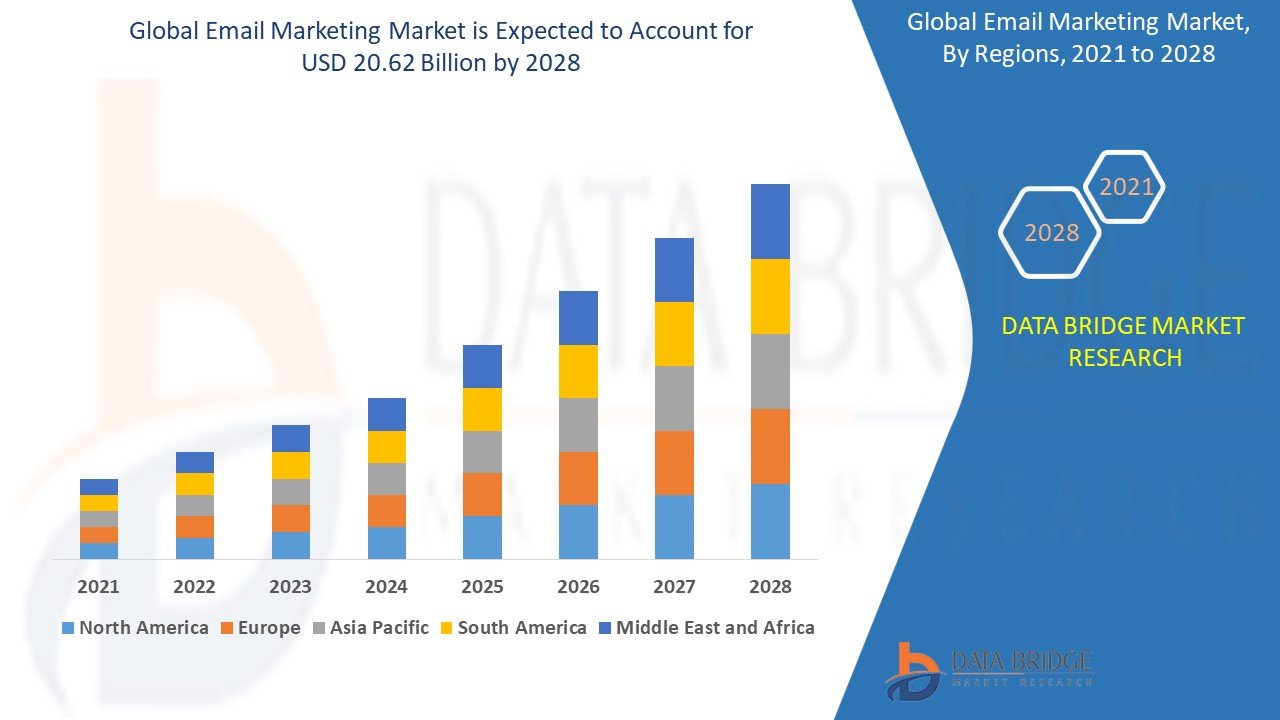 Email marketing market size is valued at USD 20.62 billion by 2028 is expected to grow at a compound annual growth rate of 15.20% in the forecast period of 2021 to 2028.