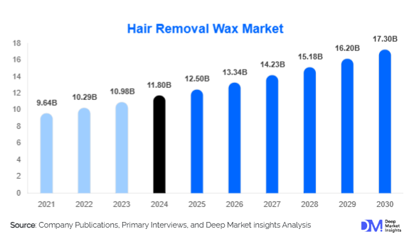 According to Deep Market Insights, the global Hair Removal Wax Market size is projected to grow from USD 12.5 Billion in 2025 to reach USD 17.3 Billion by 2030, expanding at a CAGR of 6.7% during the forecast period (2025–2030).