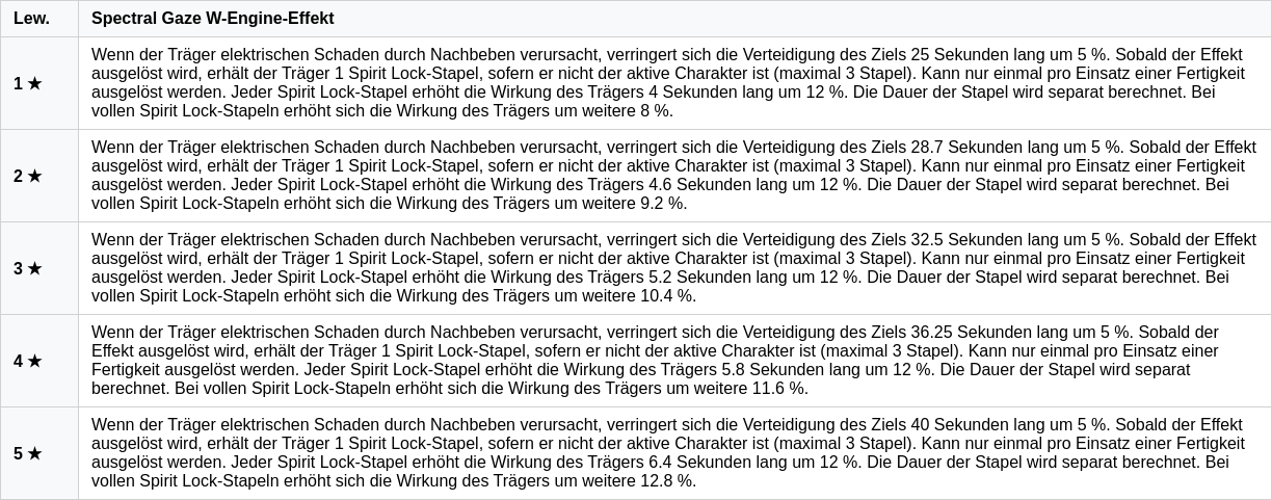 Wenn Aftershock elektrischen Schaden verursacht, erhöht Spectral Gaze den Impact und senkt die Verteidigung des Gegners um 25 %.