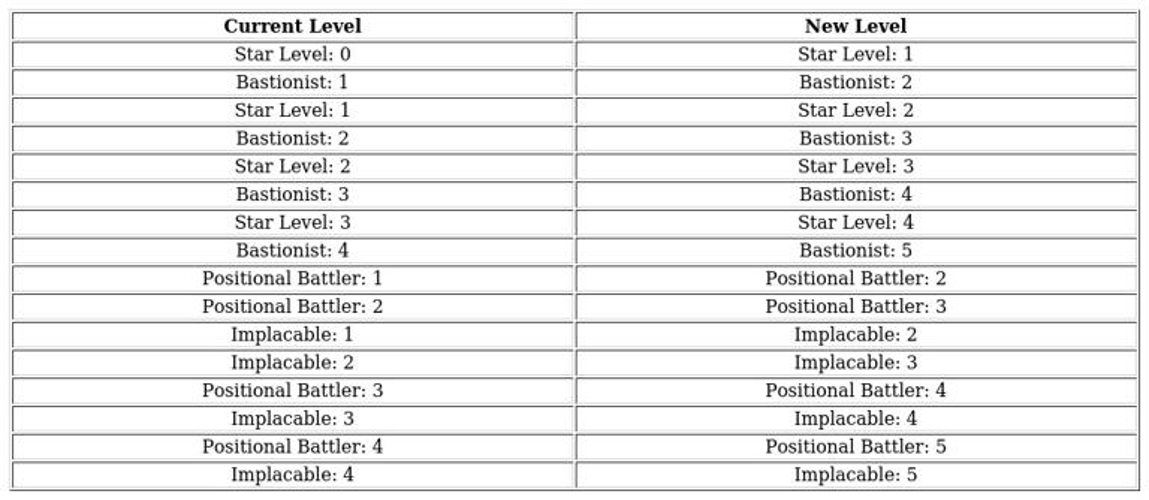 The initial column displays your hero's current skill level alongside their star rating.