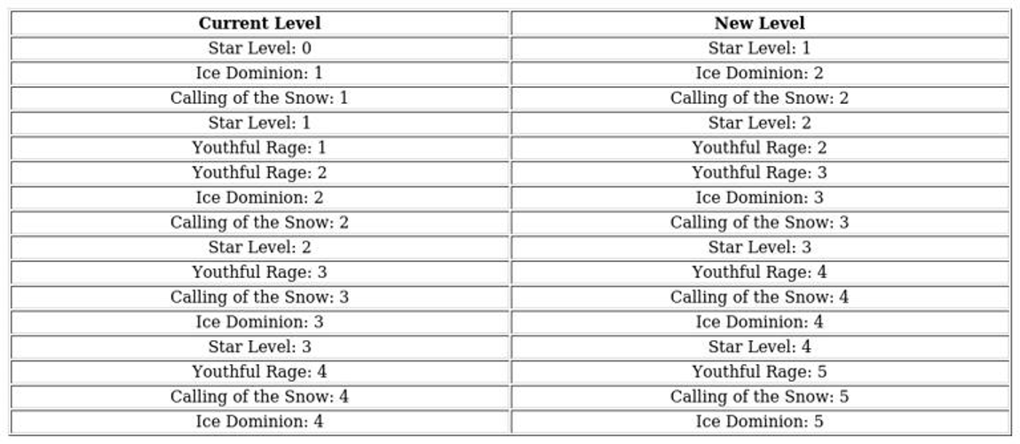 Enhance your hero's abilities and star ranking according to this upgrade path.