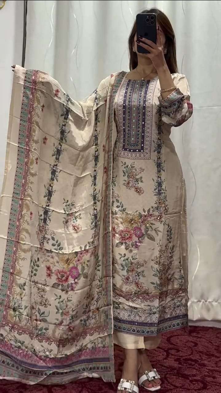 A working woman needs professional yet modest clothing. Linen or soft cotton suits with minimal embroidery work well in office environments.