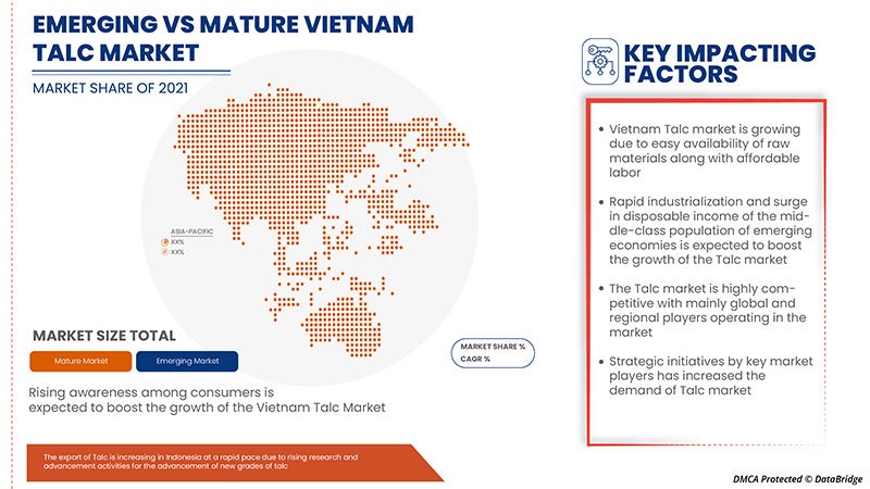 A large-scale Vietnam Talc Market report comprises of extensive study about diverse market segments and regions, emerging trends, and major drivers, challenges, and opportunities in the market. Market segmentation is a significant parameter that categorizes the market depending upon application, vertical, deployment model, end-user, geography, etc. Vietnam Talc Market report also provides CAGR value fluctuation in percentage during the forecast period for the market. Additionally, this report has been structured by keeping in mind all the foremost aspects of the market research that put forth the market landscape simply into focus.