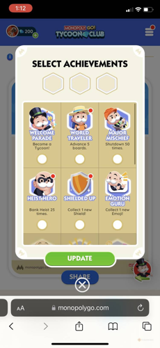 Achievements in Monopoly Go