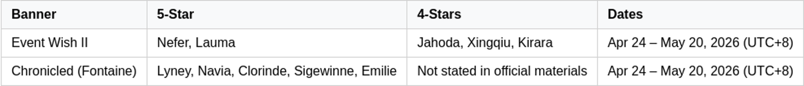 • These banners are an excellent opportunity for players building Lunar-Bloom, Hyperbloom, or Quicken teams and for collectors who missed Nefer/Lauma.